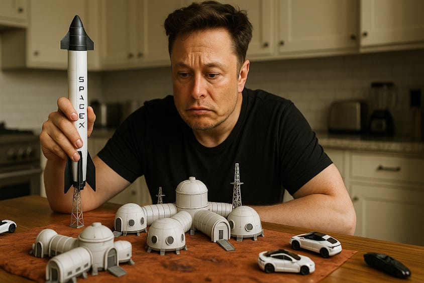 Musk, on his side, seems to have symbolically given up on Mars. He says it’s pointless—we’d just carry our cultural baggage with us.